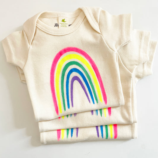 HAND PAINTED RAINBOW | ORGANIC COTTON BABY ONESIE